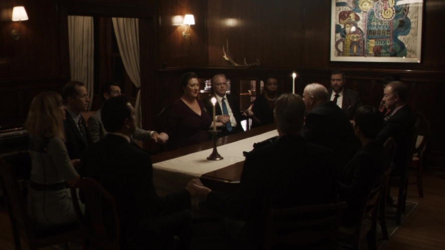 “Star of the Morning” is a name ascribed to both Christ and Satan in the Christian Bible, from words that mean “light-bringer.” When Father Bennett arrives at the fundraiser for the Friars of Ascension, his eye lingers on the HE IS COMING poster for the Pope’s pending arrival in Chicago. Each time we see the poster onscreen, it looms larger. What should be an exciting and refreshing time for the faithful is becoming–most specifically in the eyes of the fathers–a promise of imminent doom. The reveal at episode’s end is almost an afterthought: of course this coterie of rich and powerful are paving a path for the lord of all evil. Of course the vocare pulvare corporealizes every protracted assault on the country’s most vulnerable, chumming the water for Satan.