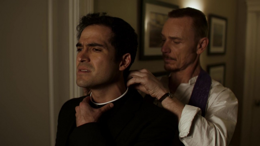 This metaphor–perhaps thorny for viewers not raised in a Christian tradition–is seeded throughout episode four’s visuals. It’s particularly strong when Father Marcus dons his black hat and goes door-to-door, seeking the faithful and the knowing to bolster his cause. Marcus’s actions so far point to a Christmas faith; each exorcism he performs is dramatic, world-changing, and solo unto itself. He fights the demon one-to-one, and sometimes he loses, but the face is always one he recognizes.