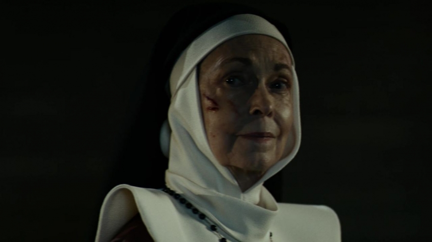 Mother Bernadette’s faith is of the Easter variety. Everything about her abbey, her nuns, and the exorcisms they perform stands in contrast. Where we’ve seen Marcus in darkened rooms, sweat-soaked and shouting Latin commands, the nuns join themselves together in a ring, singing prayers in English. They beseech Mary, rather than God or even Christ. The arena of their efforts is a greenhouse, quiet and lush. Most striking, the possession plague is an open secret here, discussed by Bernadette as an everyday occurrence to be handled as the nuns handle food pantries and vespers.