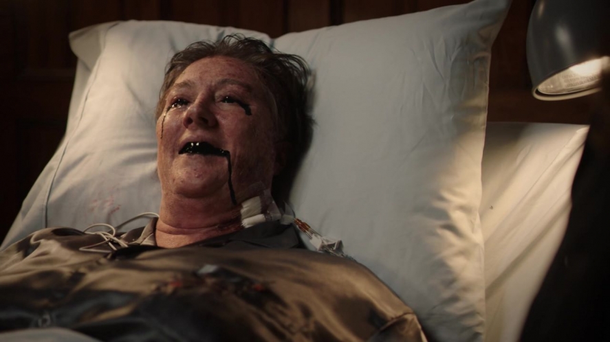 Reactionary conspiratorial thinking had entered the mainstream violently; today, it’s no longer news. The conspiracy has no use for a rotting socialite, says Maria Walters’ demon, a bleak window into the human hosts who’ve accepted integration and been abandoned. Her body dying of cancer and her mind overtaken, her demon apparently trapped and tormenting her, Maria’s lot is little better than that of the homeless cannon fodder seen in season one. It might also be read as pointed commentary re: the uses of white femininity in fascist movements.