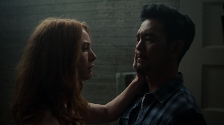 Of course, this reflects sad realities, as horror often does. By the time Nikki appears to Andy, his mind and spirit are stretched to breaking, so thoroughly exhausted that he lets himself believe his family can be made whole. I will never leave you again, she assures him… but to the viewer, that sounds like a threat. Alicia Witt is great in her first full episode as the Nikki-thing. The Exorcist is full of expressive face actors (Ben Daniels and Li Jun Li communicate entire scripts with just their eyes) and Nikki slips seamlessly between coquettish, bittersweet, and a chilling remoteness. Watching her puppet Andy throughout his house–their house–casts our entire awareness of him into doubt. It’s an intriguing depiction of the typical abuse dynamic in media and in life, an inversion of whose pain is visible. After promising to help Andy fool the priests and keep their family safe, Nikki purrs, I think that’s what they call happily ever after.